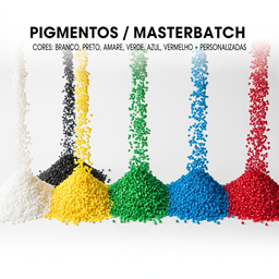 Temos pigmentos/masterbatches nas seguintes cores: branco, preto, amarelo, verde, azul e vermelho.